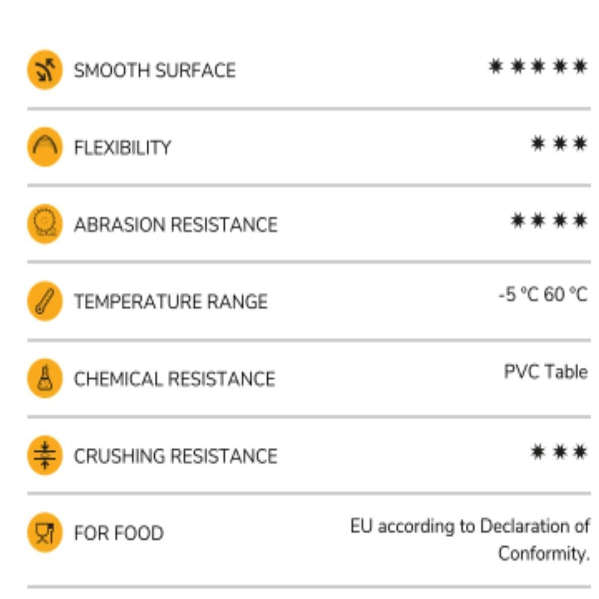 | AFS Part NO: | Ø Nominal I.D (mm) | Ø Nominal I.D (Inch) | O.D. (mm) | Working Pressure at 23 °C (Bar) | Vacuum 23 °C m/H2O | Bending Radius (mm) | Weight Meter g/m | Max Coil Length (mtr) |
